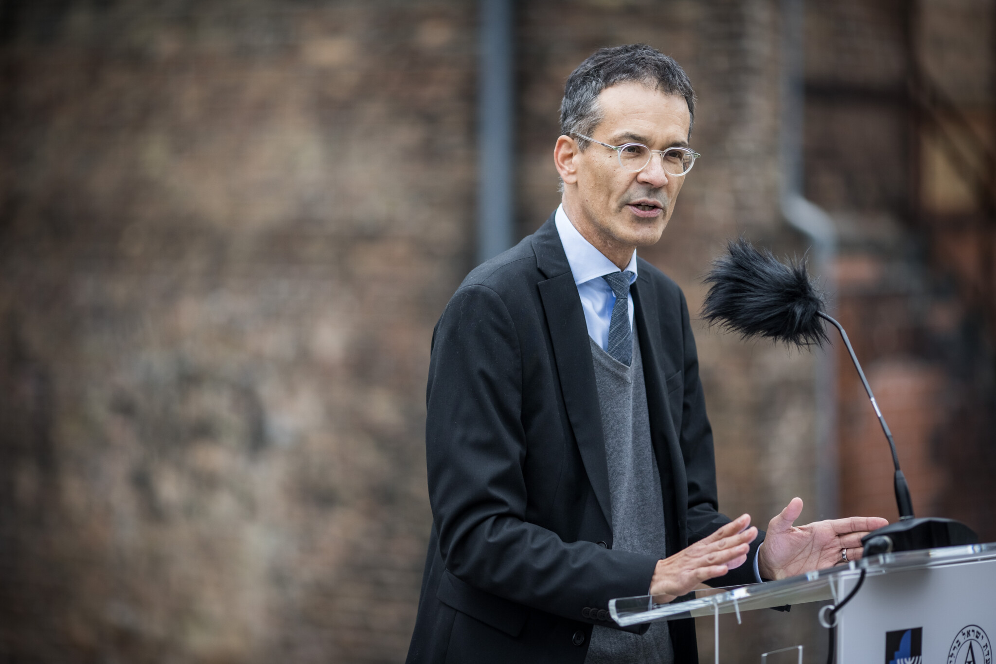 Dr. Daniel Aschheim, Leitung Öffentlichkeitsabteilung in der Botschaft des Staates Israel, stellte heraus, dass Antisemitismus heute nicht verschwunden ist, sondern sich immer offener und brutaler zeigt. Er betonte dabei, dass »Nie wieder!« keine Floskel, sondern ein Versprechen sei, das »nicht nur uns Jüdinnen und Juden gilt. Es ist ein universeller Anspruch, bei dem es um Menschenwürde, um Erinnerung und um Verantwortung hier und heute geht.«