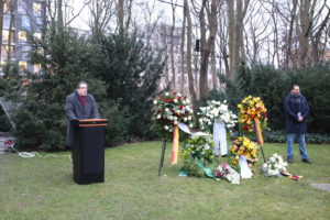Alle Redner betonten sehr nachdrücklich, dass noch deutlicher Gesicht gegen Antiziganismus und Antisemitismus gezeigt werden muss, dass noch lauterer Widerstand geleistet und noch stärker Verantwortung übernommen werden muss. Es sprachen Petra Pau, Vizepräsidentin des Deutschen Bundestages, Petra Rosenberg, Vorsitzende des Landesverbandes Deutscher Sinti und Roma Berlin-Brandenburg e. V., Claudia Roth, Vizepräsidentin des Deutschen Bundestages, Michael Roth, Staatsminister für Europa im Auswärtigen Amt der Bundesrepublik Deutschland, Oswald Marschall, stellvertretender Vorsitzender des Dokumentations- und Kulturzentrums Deutscher Sinti und Roma, Heidelberg.