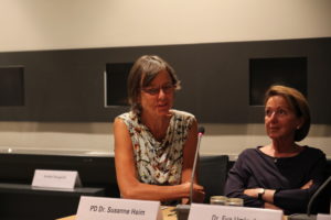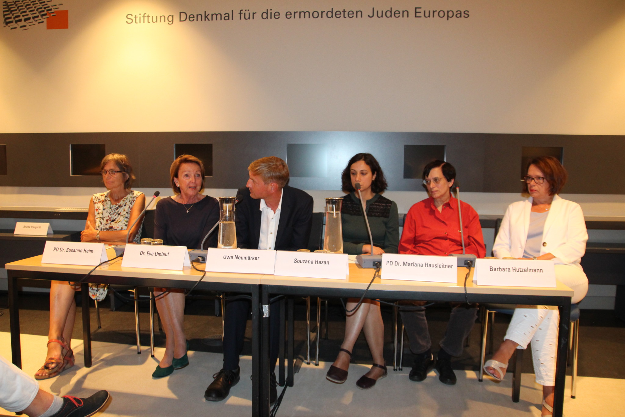 Am abschließenden Podiumsgespräch nahmen Dr. Eva Umlauf (München), PD Dr. Susanne Heim, Barbara Hutzelmann (München), PD Dr. Mariana Hausleitner (Berlin) und Souzana Hazan (Augsburg) teil. Uwe Neumärker, Direktor der Stiftung Denkmal für die ermordeten Juden Europas, moderierte die Beiträge.