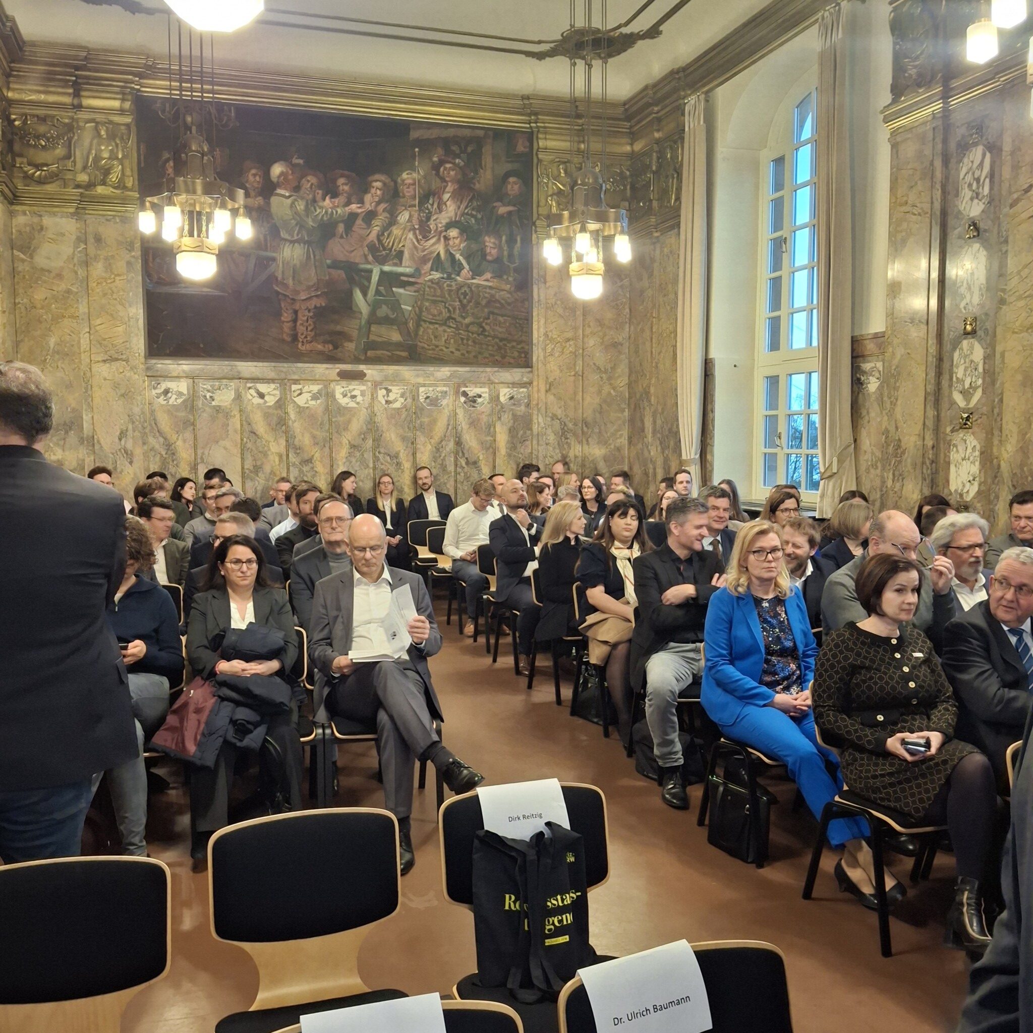 Die Eröffnung der Schau fand in dem bis auf den letzten Platz gefüllten historischen Senatssaal des Gerichtsgebäudes statt; auch viele Rechtsreferendare und Referendarinnen waren gekommen. Die Justiz des Landes Nordrhein-Westfalen war durch Justizminister Benjamin Limbach und durch den Hausherrn, den Präsidenten des OLG, Dr. Werner Richter vertreten. Dr. Ulrich Baumann, seinerzeit Projektleiter des Ausstellungsprojektes, hielt einen historischen Einführungsvortrag, dem sich eine Podiumsdiskussion anschloss, an der Prof. Dr. Marco Dräger (Heidelberg), Dr. Peter Lutz Kalmbach (Bremen) und Professorin Dr. Gisela Diewald-Kerkmann (Bielefeld) teilnahmen. Richterin Dr. Mareike Büscher gelang es als Diskussionsleiterin, dem Publikum einen weiten Horizont an Themen nahezubringen, von der Verfahrensweise der Wehrmachtjustiz bis zu erinnerungspolitischen Aspekten. Dieses hochkarätige Gespräch war ein neuer Höhepunkt in der fast 19-jährigen Geschichte des Wanderns unserer Ausstellung. Ein Empfang des Hauses beschloss den Abend.