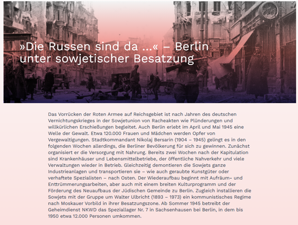 Die Webseite »www.70-jahre-kriegsende.de« wurde anlässlich des 70. Jahrestages des Endes des Zweiten Weltkrieges im Mai 2015 veröffentlicht. Die Onlineausstellung entstand in Zusammmenarbeit mit dem Deutsch-Russischen Museum Berlin-Karlshorst. Die Inhalte sind in deutscher und russischer Sprache abrufbar. Im März 2020 anlässlich des 75. Jahrestages wurde die Webseite in »www.75-jahre-kriegsende.de« umbenannt und entsprechend aktualisiert.